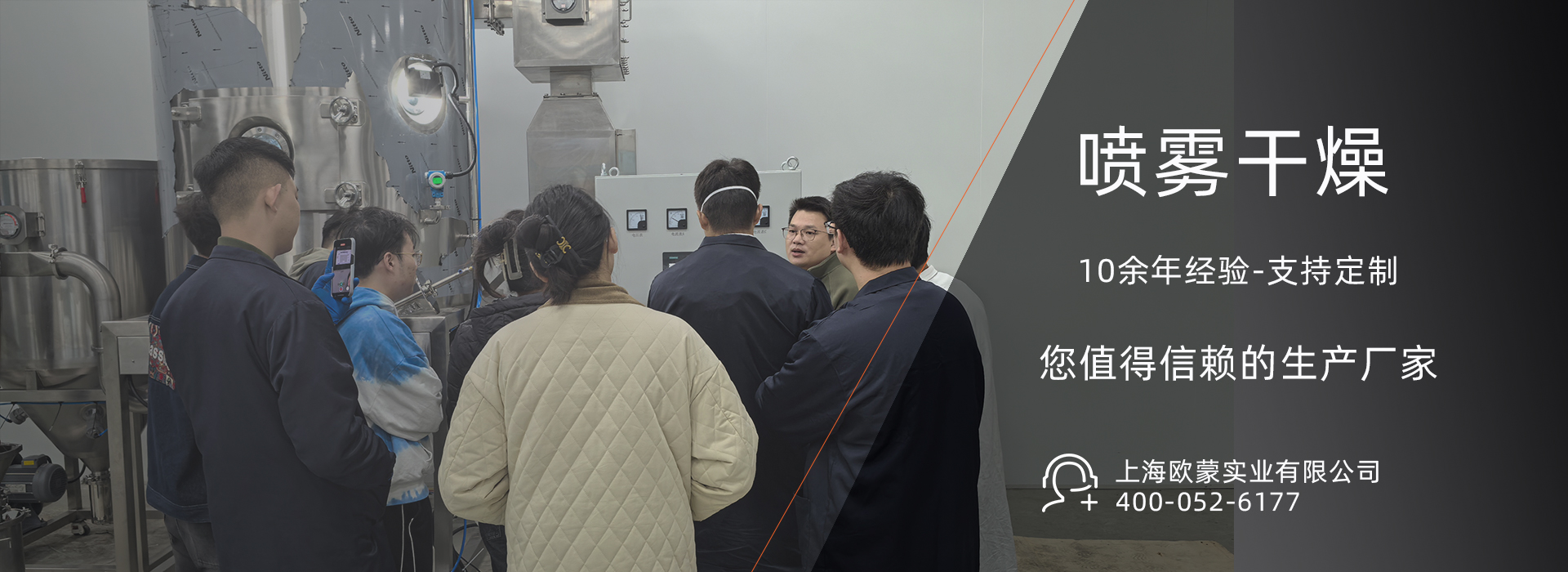 上海歐蒙實業有限公司成立于2014年,坐落于中國“申城魔都” “東方巴黎”----上海。是一家集產品研發、設計、制造、營銷于一體的綜合企業。為客戶提供整體解決方案。上海歐蒙產品主要有:噴霧干燥機系列、實驗室噴霧干燥設備、干法制粒機、噴霧造粒機、沸騰制粒機、噴霧干燥制粒機、濕法混合制粒機、旋轉制粒機、單錐真空混合干燥機、雙錐回轉真空干燥機、混合機系列、蒸發蒸餾、濃縮提取系列等適用于科研及中試生產,應...